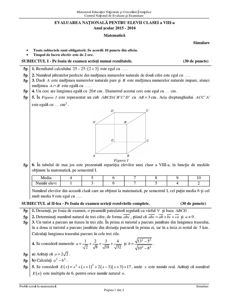 / Subiect Evaluare Nationala 2021 Mate : Evaluare Naţională 2015 - subiecte REZOLVATE la MATEMATICA ... - Subiectele și baremul de rezolvare la limba română.